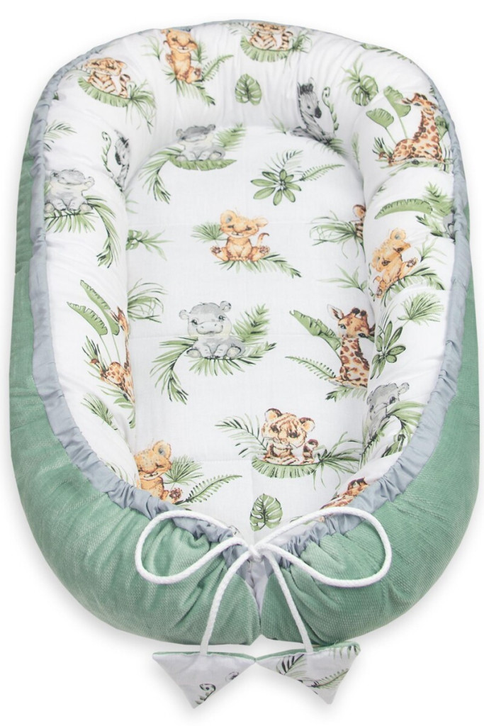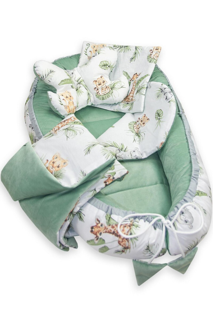 Az 5 részes babafészek szett megnyugtató, körülölelő környezetet biztosít újszülöttek és csecsemők számára. A kétoldalas kialakításnak köszönhetően a természetes pamut és a puha, meleg bársony felület közül is választható, így a baba minden helyzetben kényelmesen és biztonságban pihenhet.