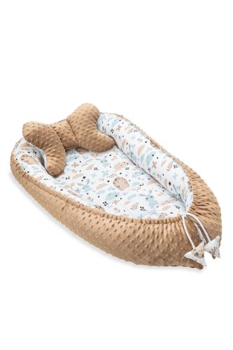 Babafészek pillangó párnával - bagoly és nyuszi - barna minky