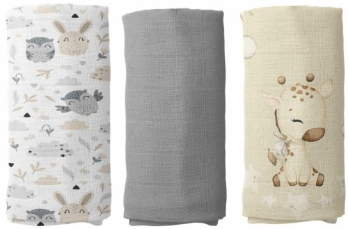 A csomag 3 db muszlin textilpelenkát tartalmaz.