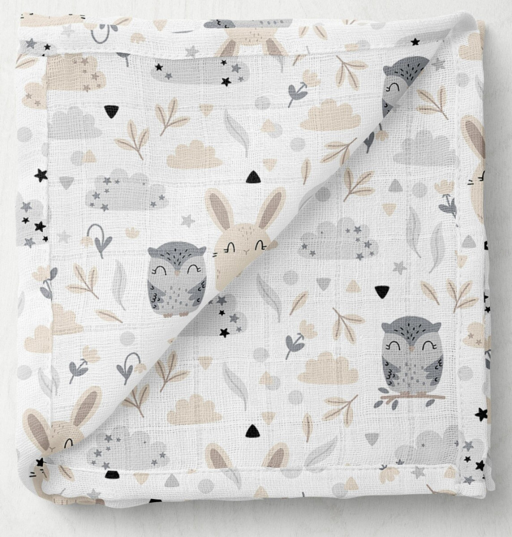 Muszlin textilpelenka csomag - bagoly és nyuszi