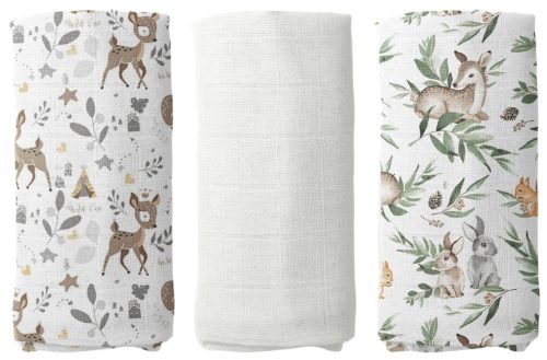 A csomag 3 db muszlin textilpelenkát tartalmaz.