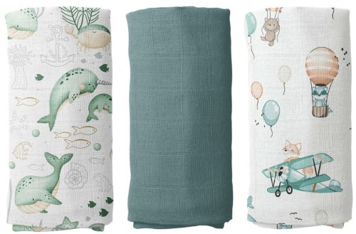 A csomag 3 db muszlin textilpelenkát tartalmaz.